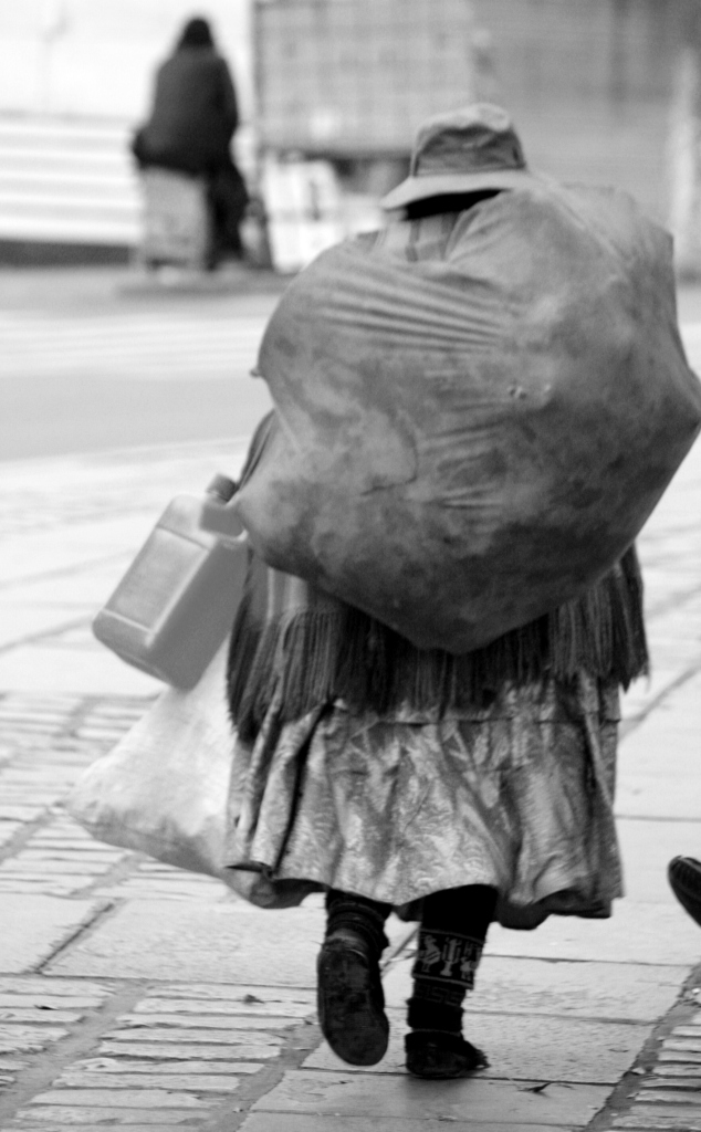 Salimos a la calle y encontramos a una ciudad en fiesta. Las bolivianas vestidas con las grandes faldas y los típicos sombreros bolivianos. Vestidas con las mejores galas para la ocasión y su pelo recogido en trenzas largas hasta la cintura, de todas las edades y clases. La gente bebiendo cerveza en exceso, bailando y comiendo mucho en la calle. La verdad es que vimos a gente muy “contenta” o desfasada, pero como nos comentaron más tarde, a las mujeres no se les permite beber en la calle, por lo que en los días de fiesta el desfase es la reina. A parte de música en la calle y jaleo aprovechamos para descansar.